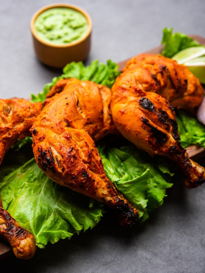 Boneless chicken chunks marinated in spiced yogurt and grilled to a smoky perfection.