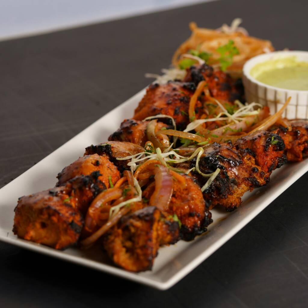 Boneless chicken chunks marinated in spiced yogurt and grilled to a smoky perfection.